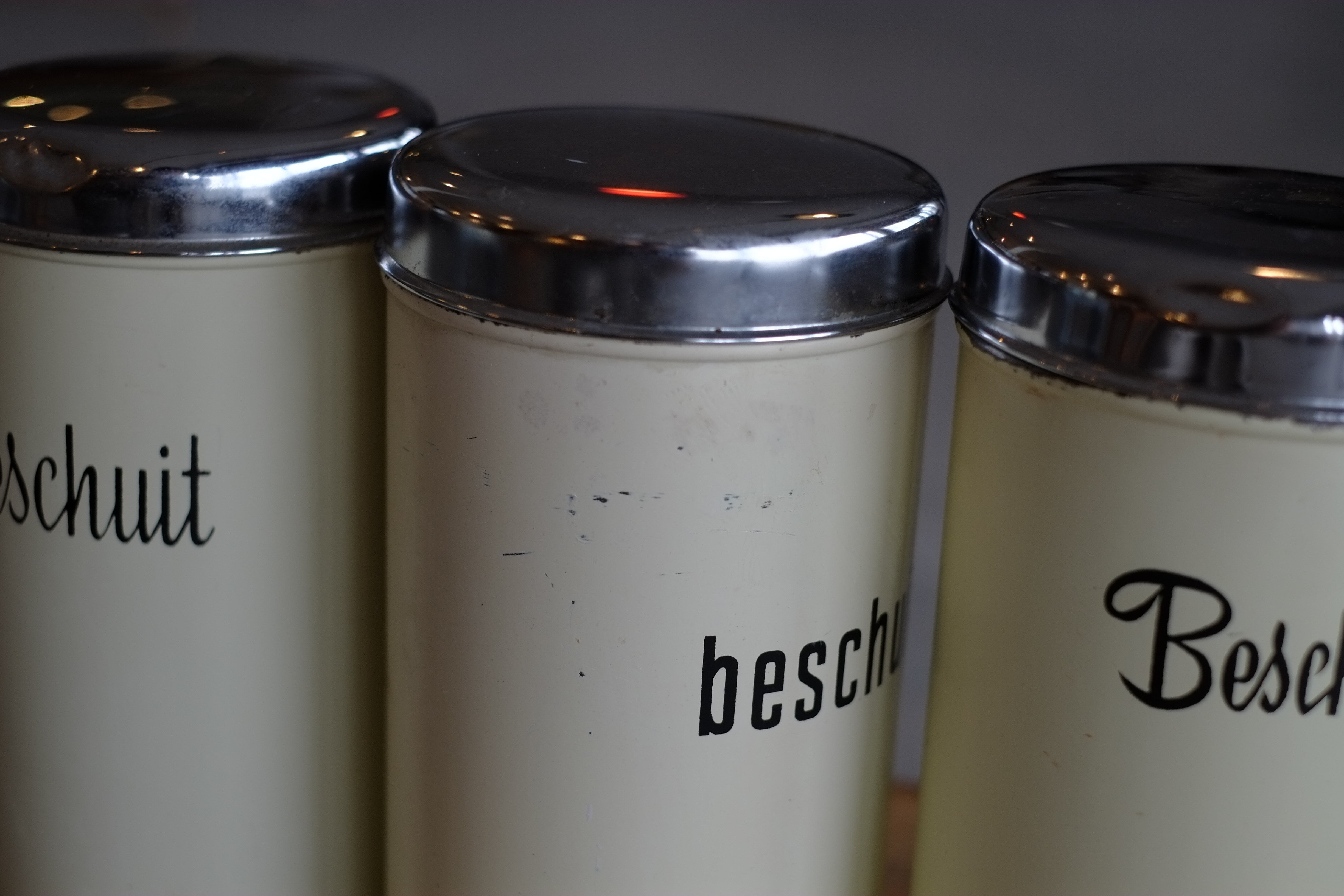 オランダの伝統食でもある丸いパンを乾燥させたbeschuitの缶。