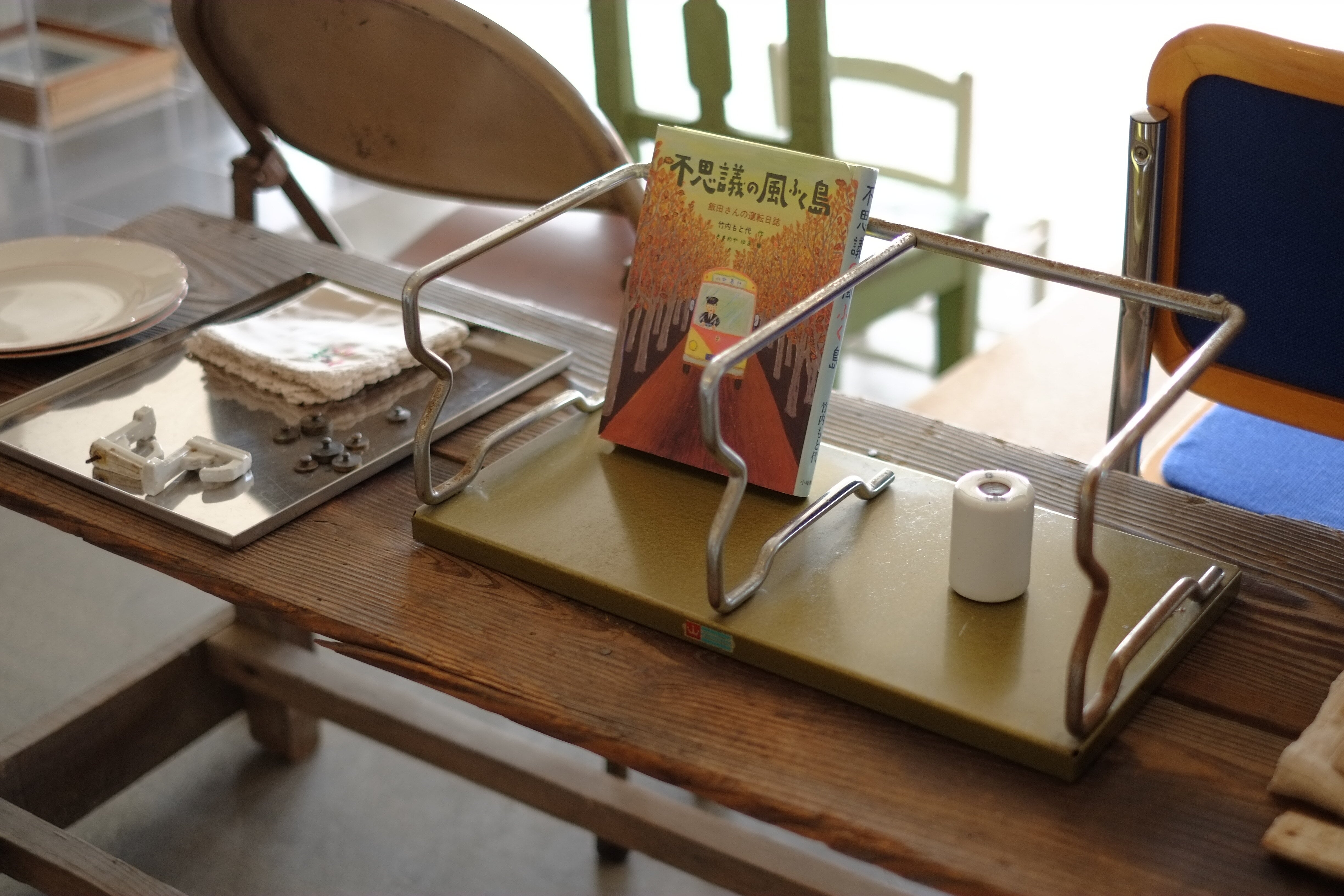 金属製のブックスタンド。