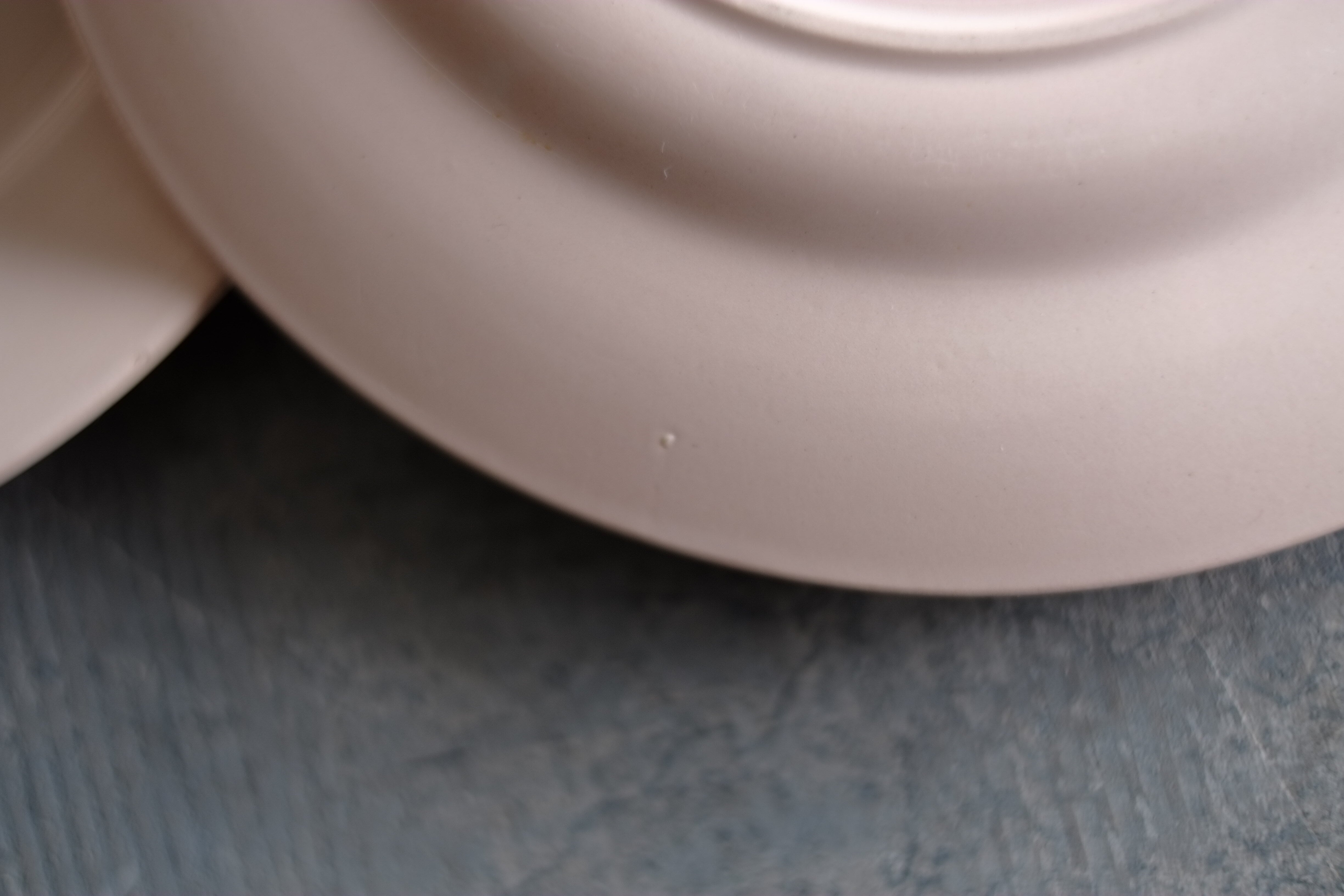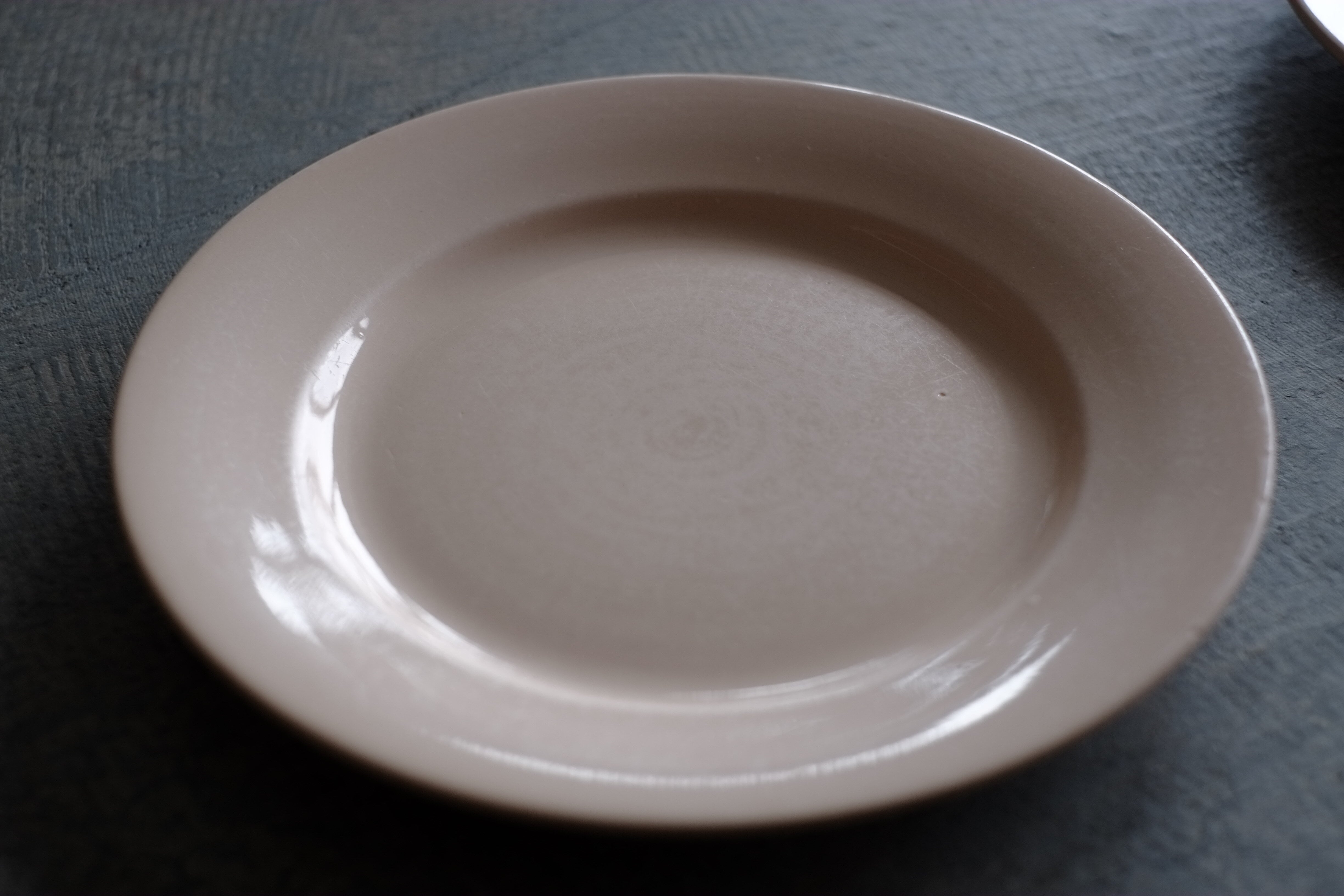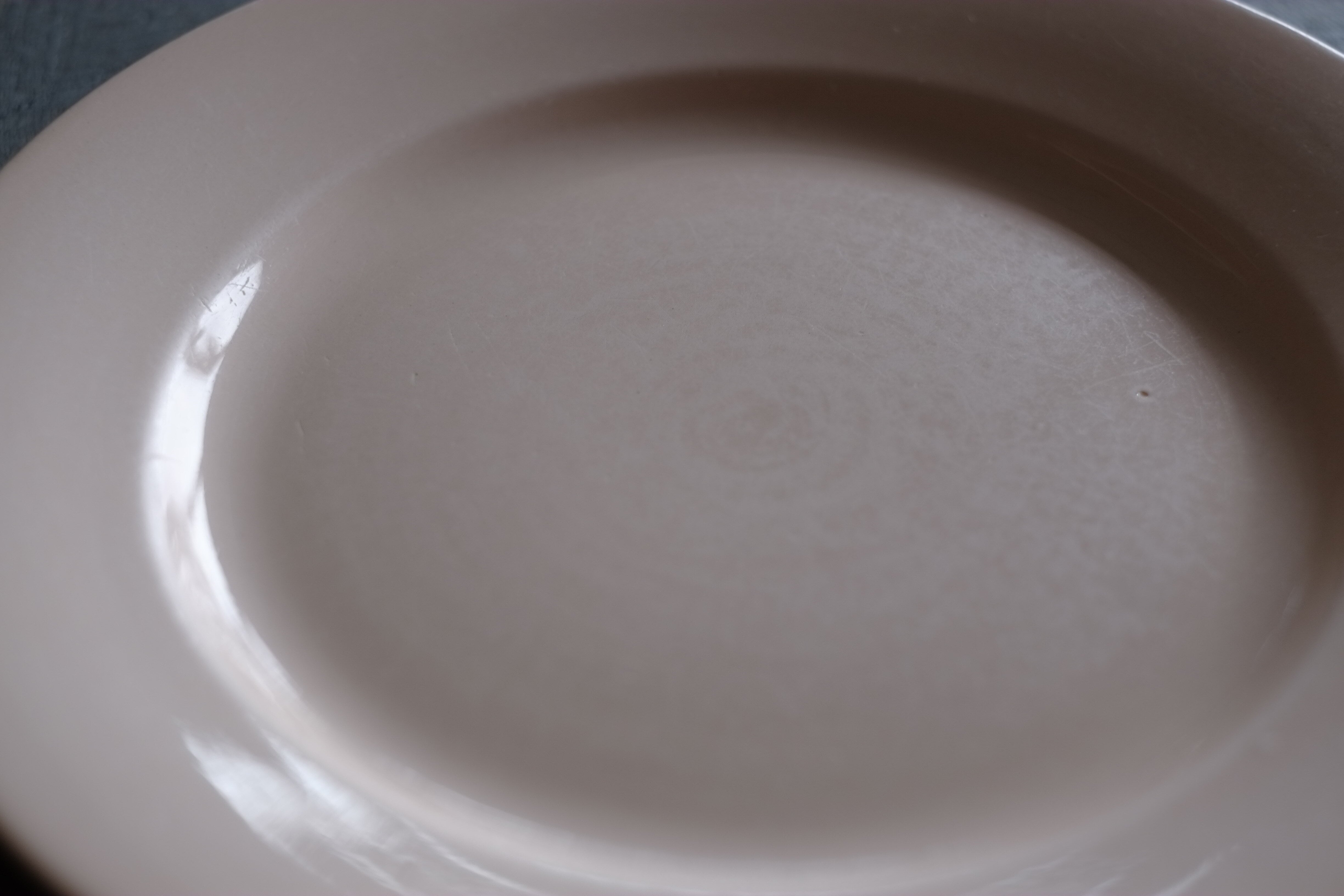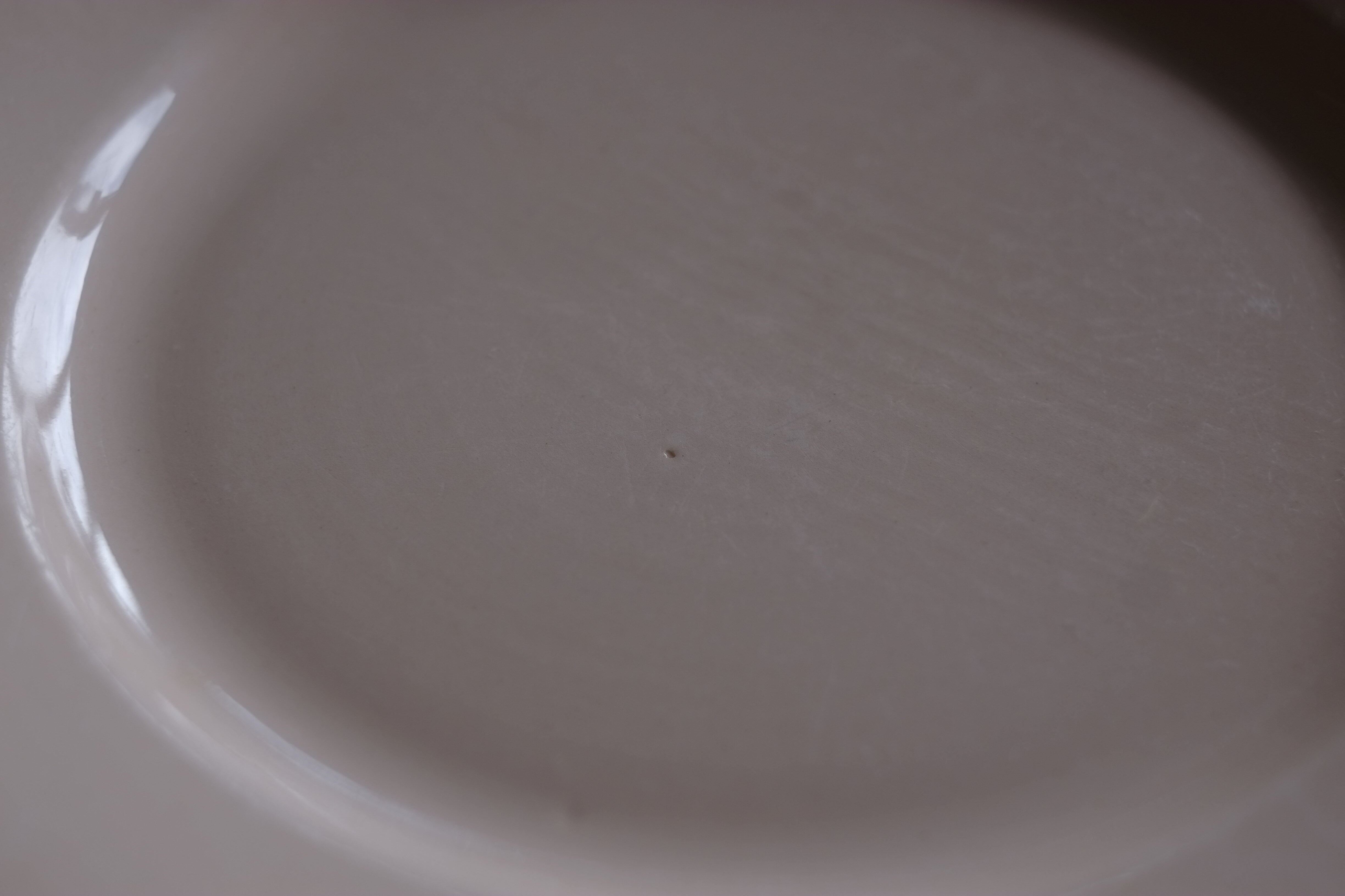 こちらは縁にはカケはございませんが、製造時についたラインの凹みが少し目立ちます。(写真6枚目)