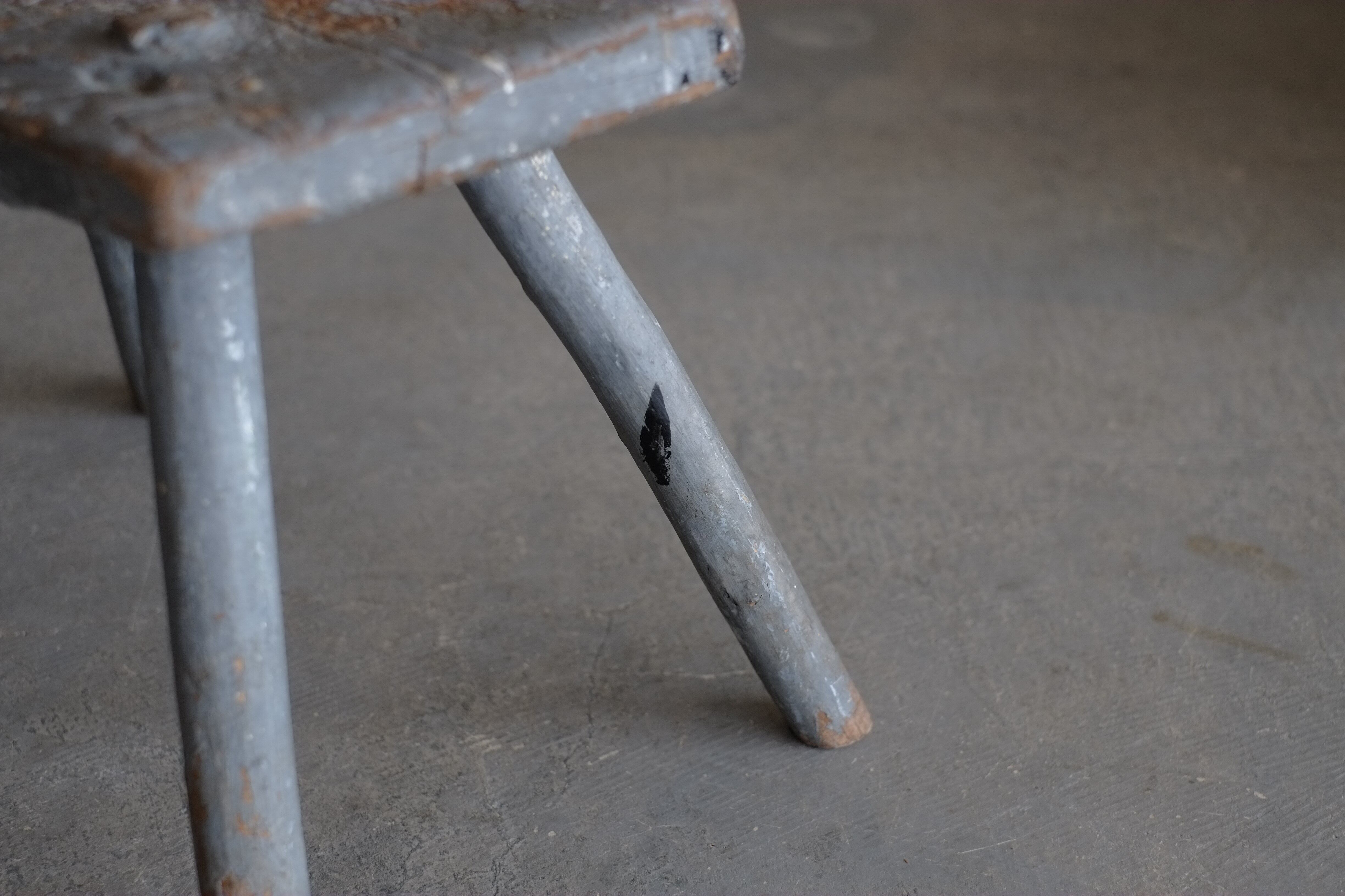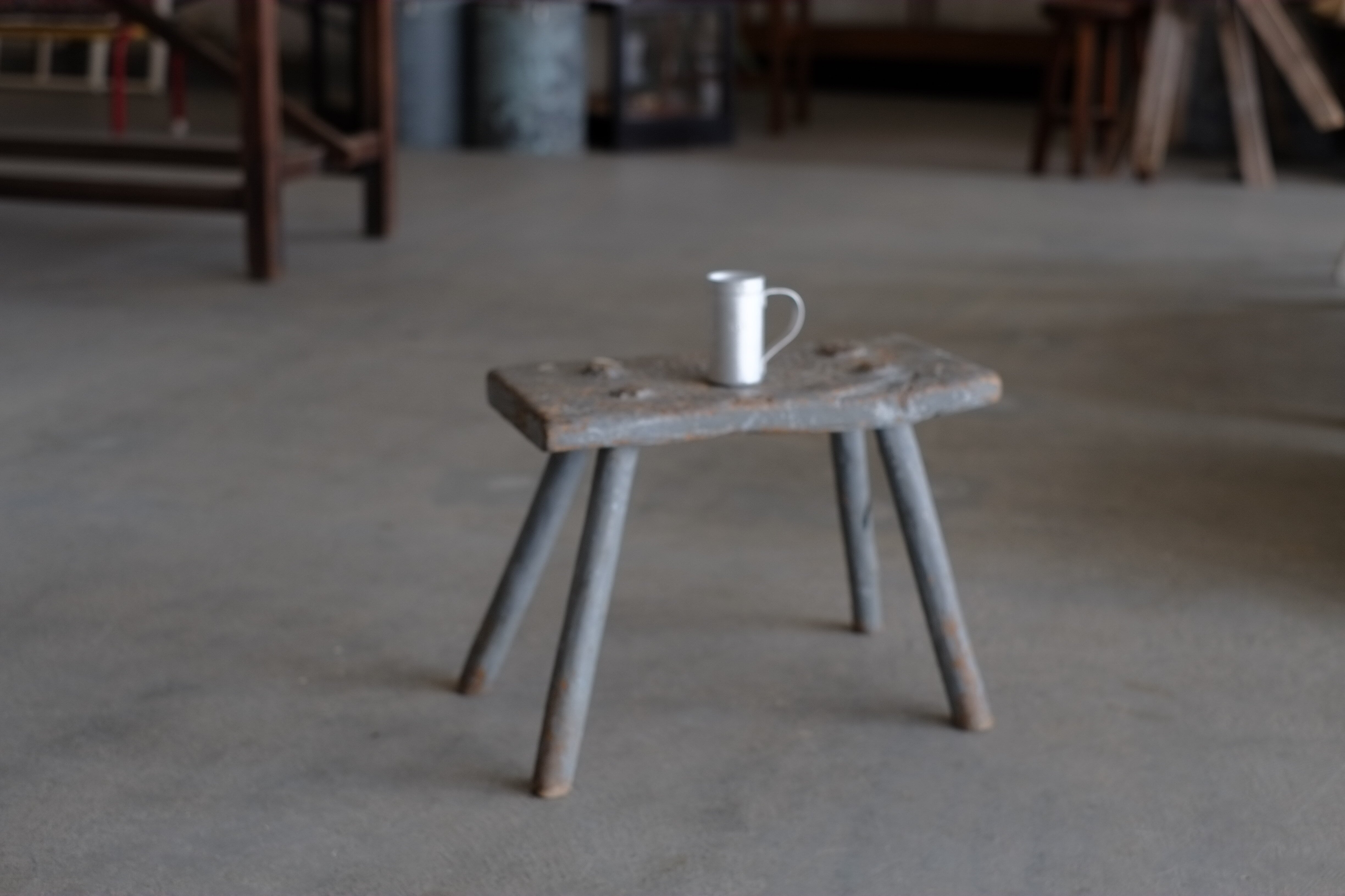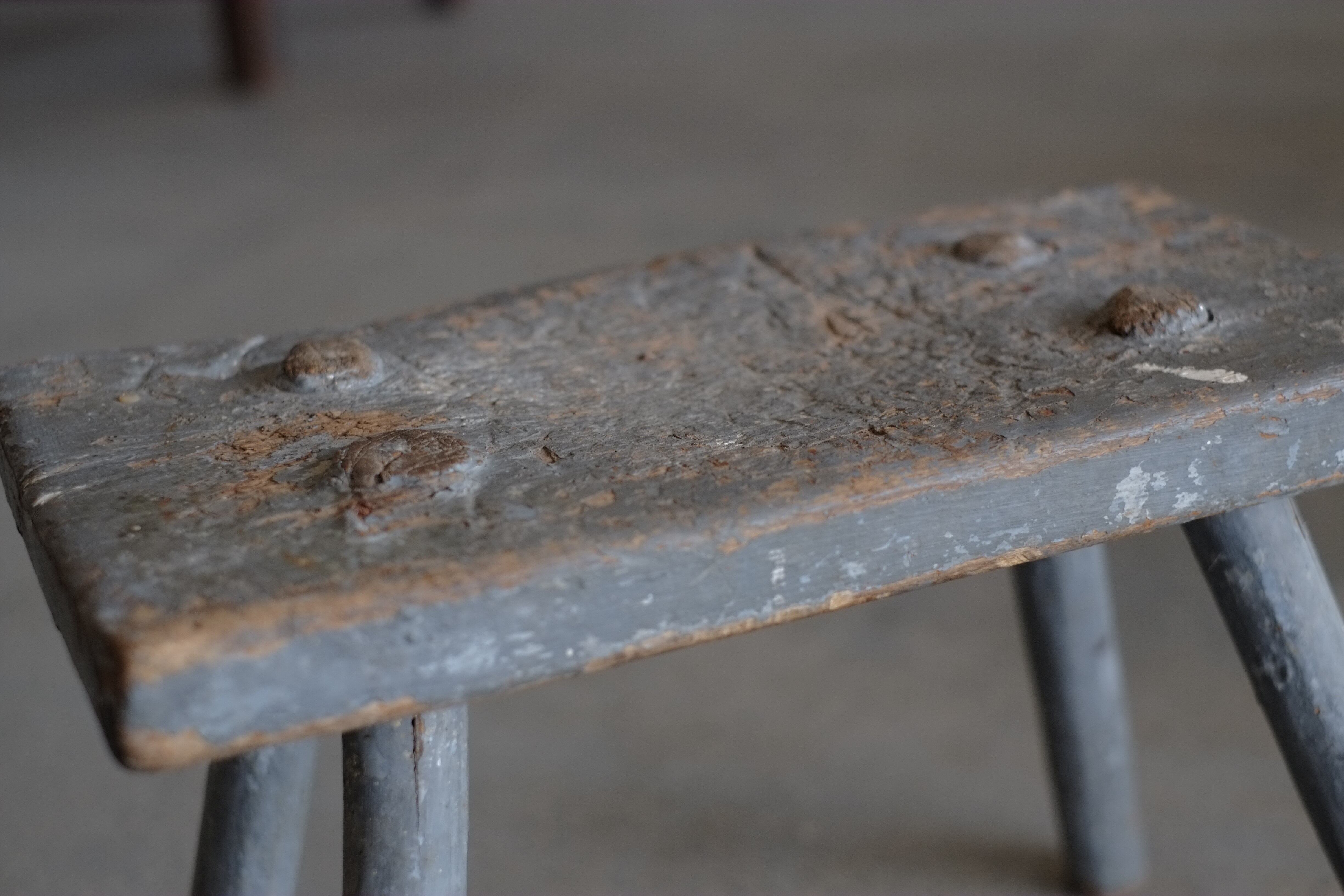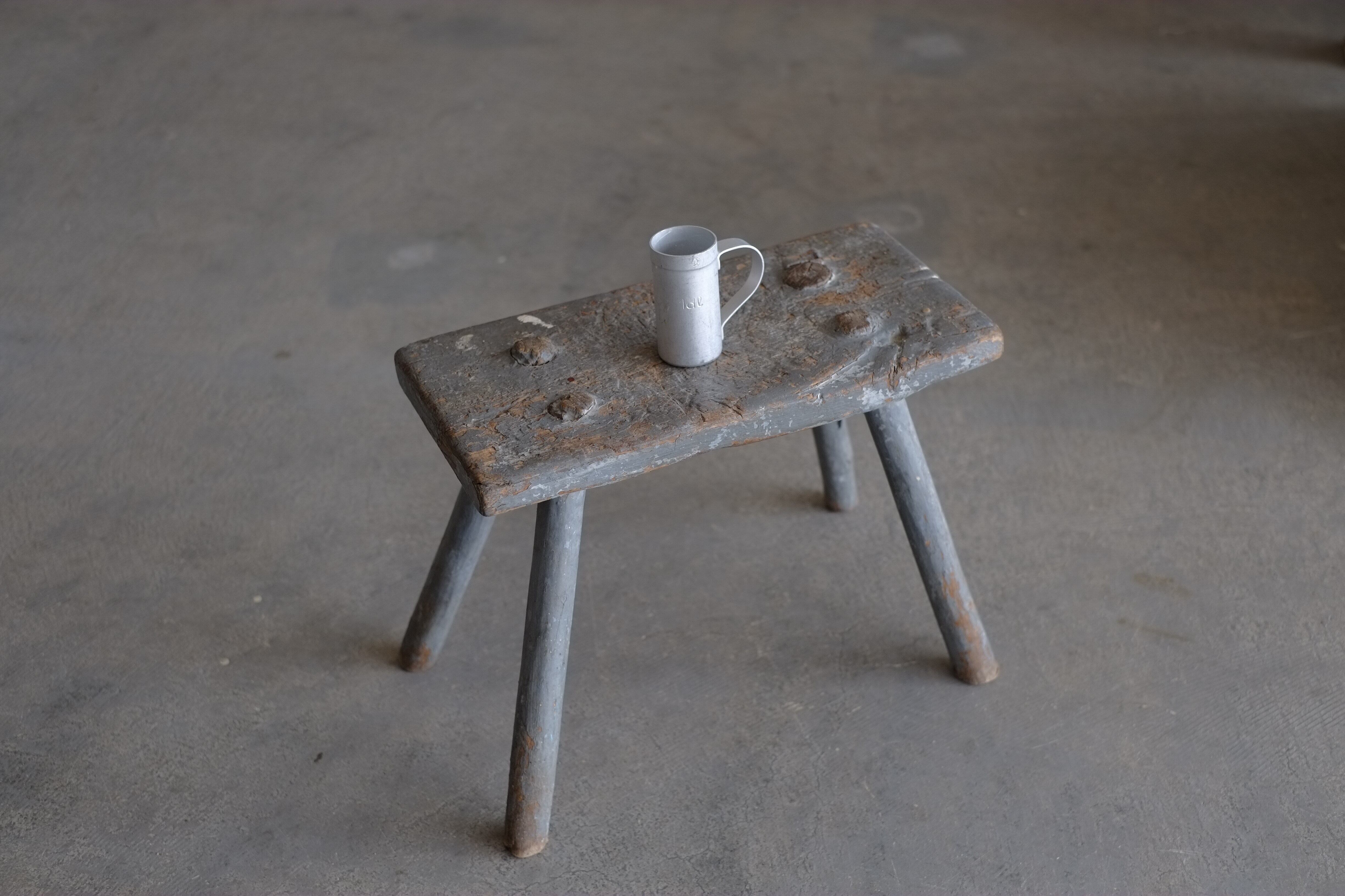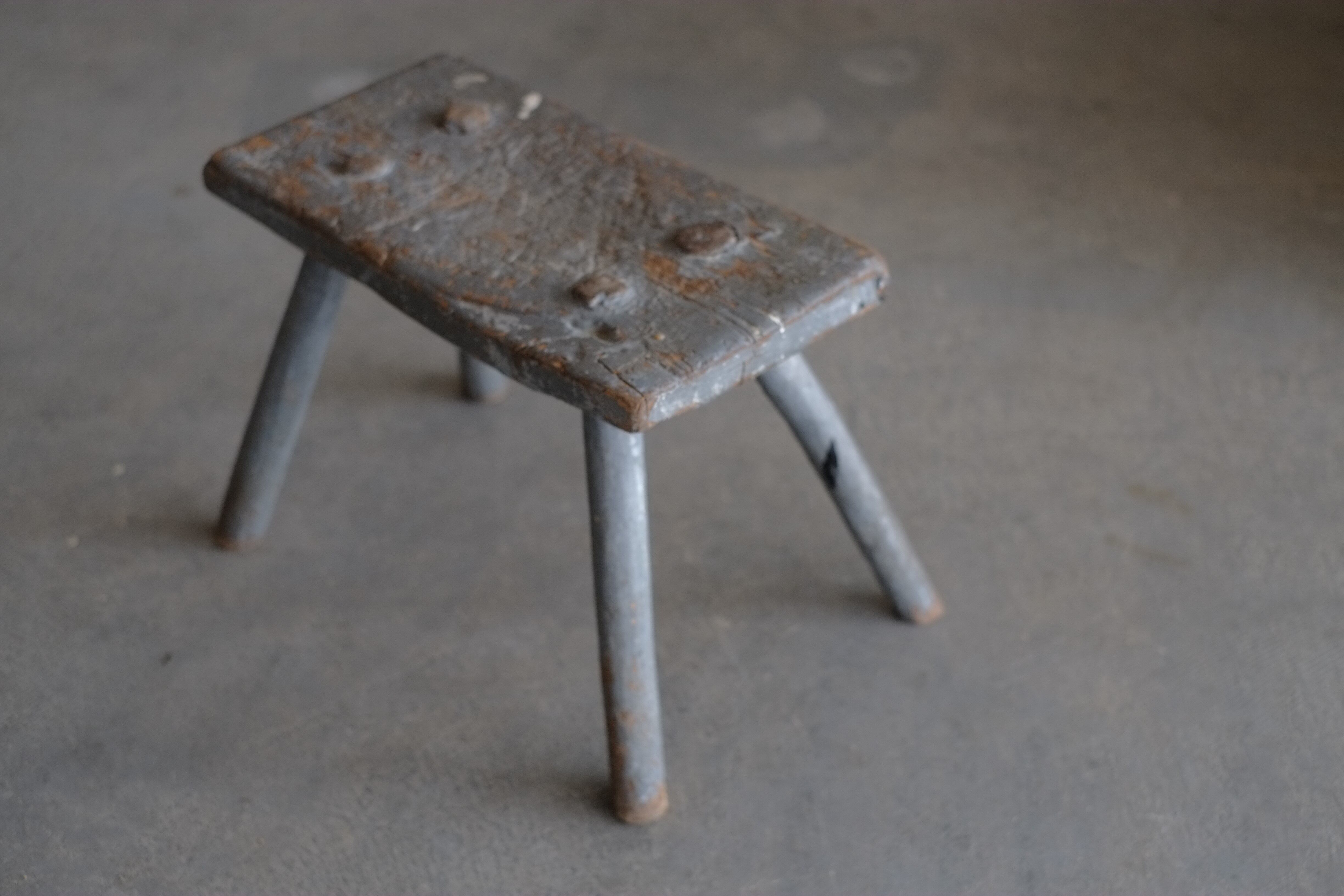 使い込まれた傷痕やペンキの剥がれがとても雰囲気良い小さなスツール。