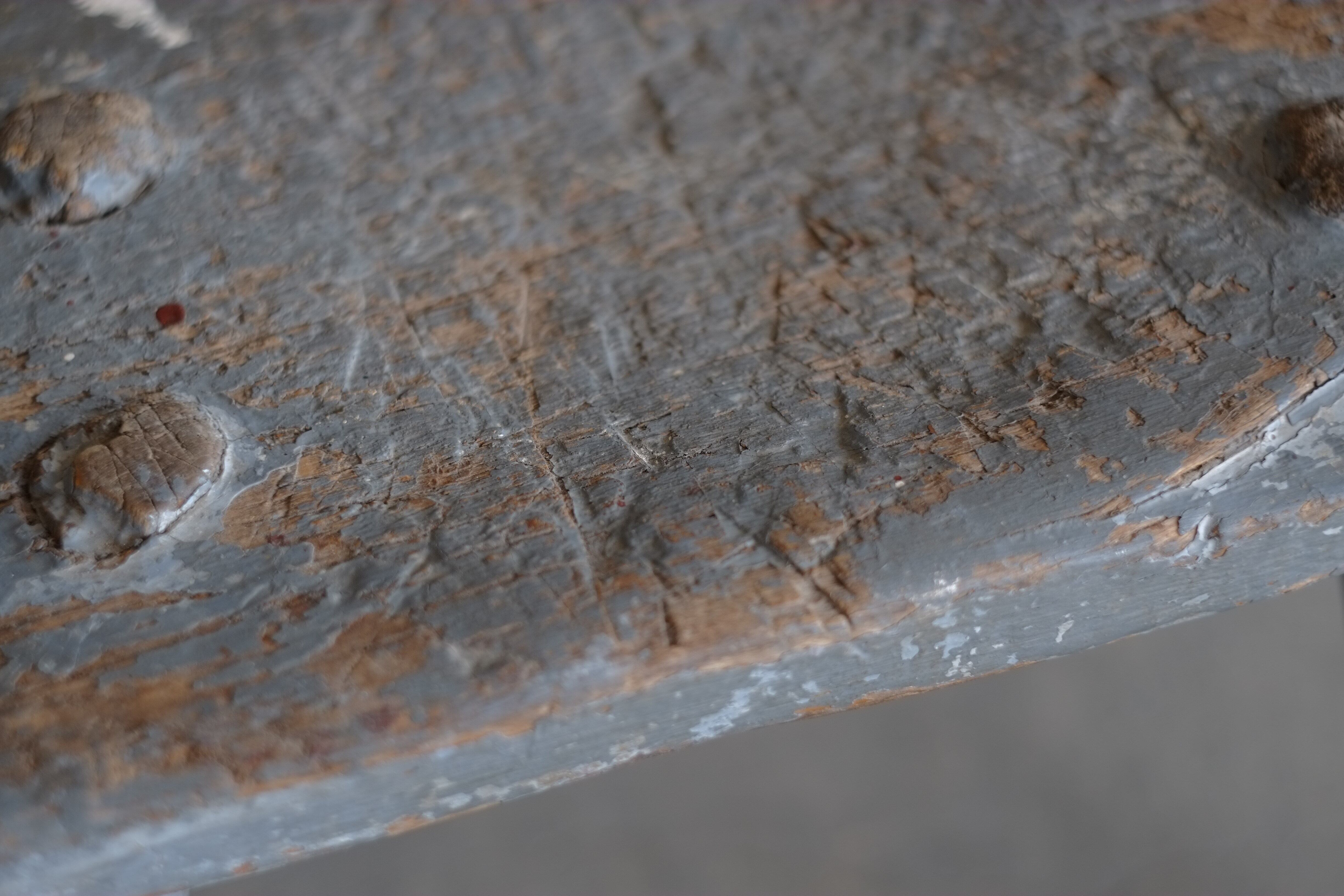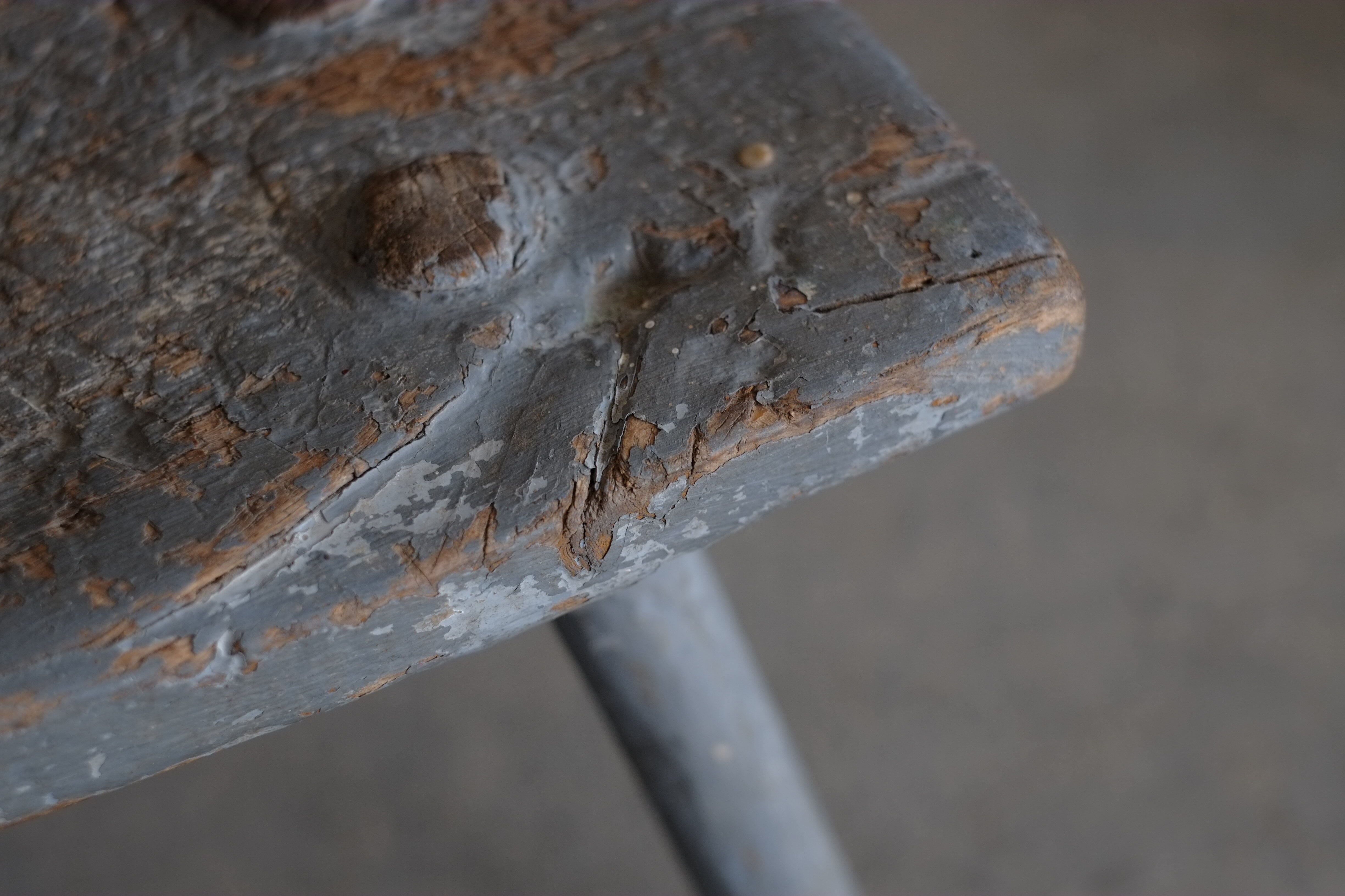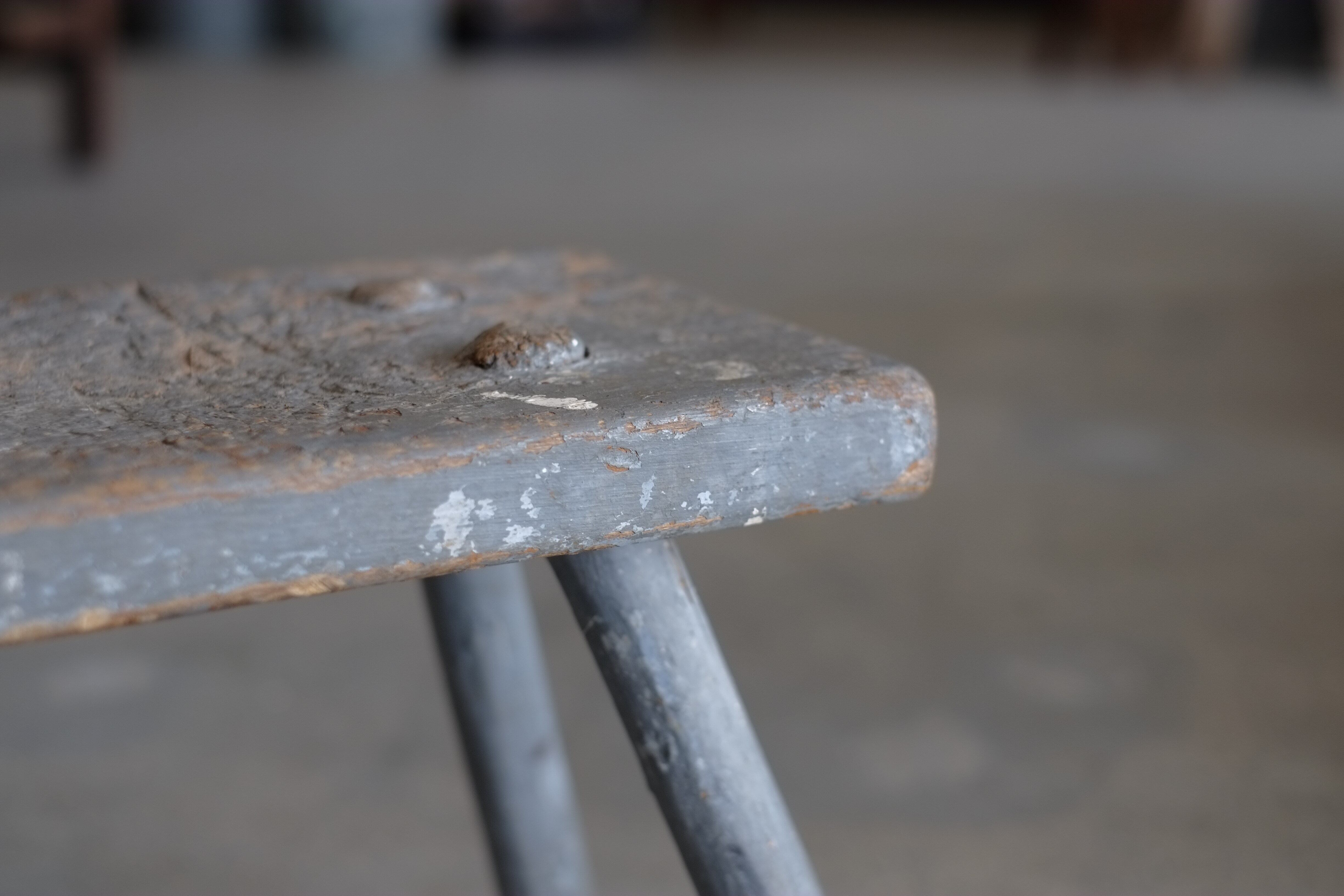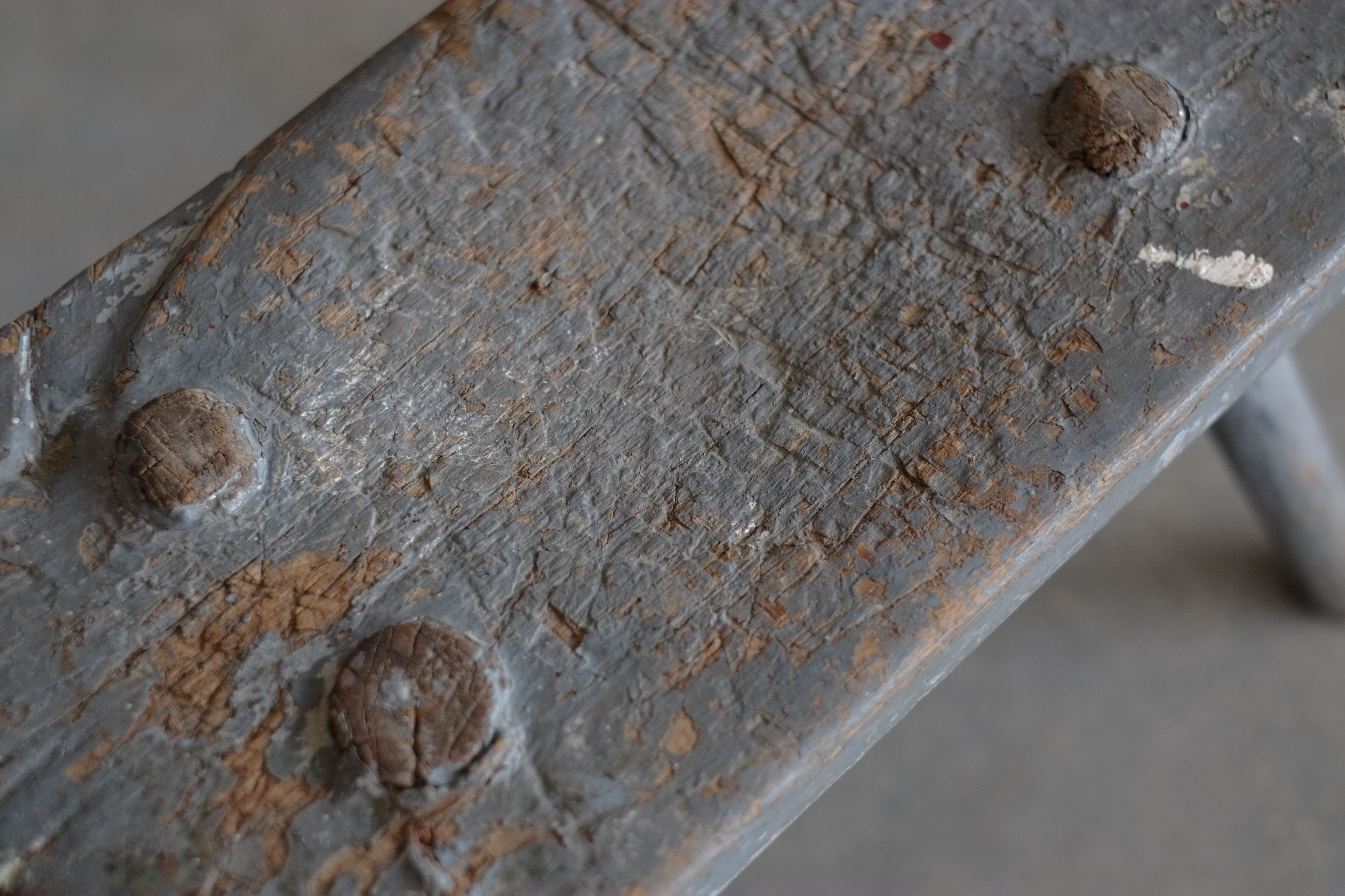 作業台として使用されていたのか、座面の真ん中が少し窪んでいます。