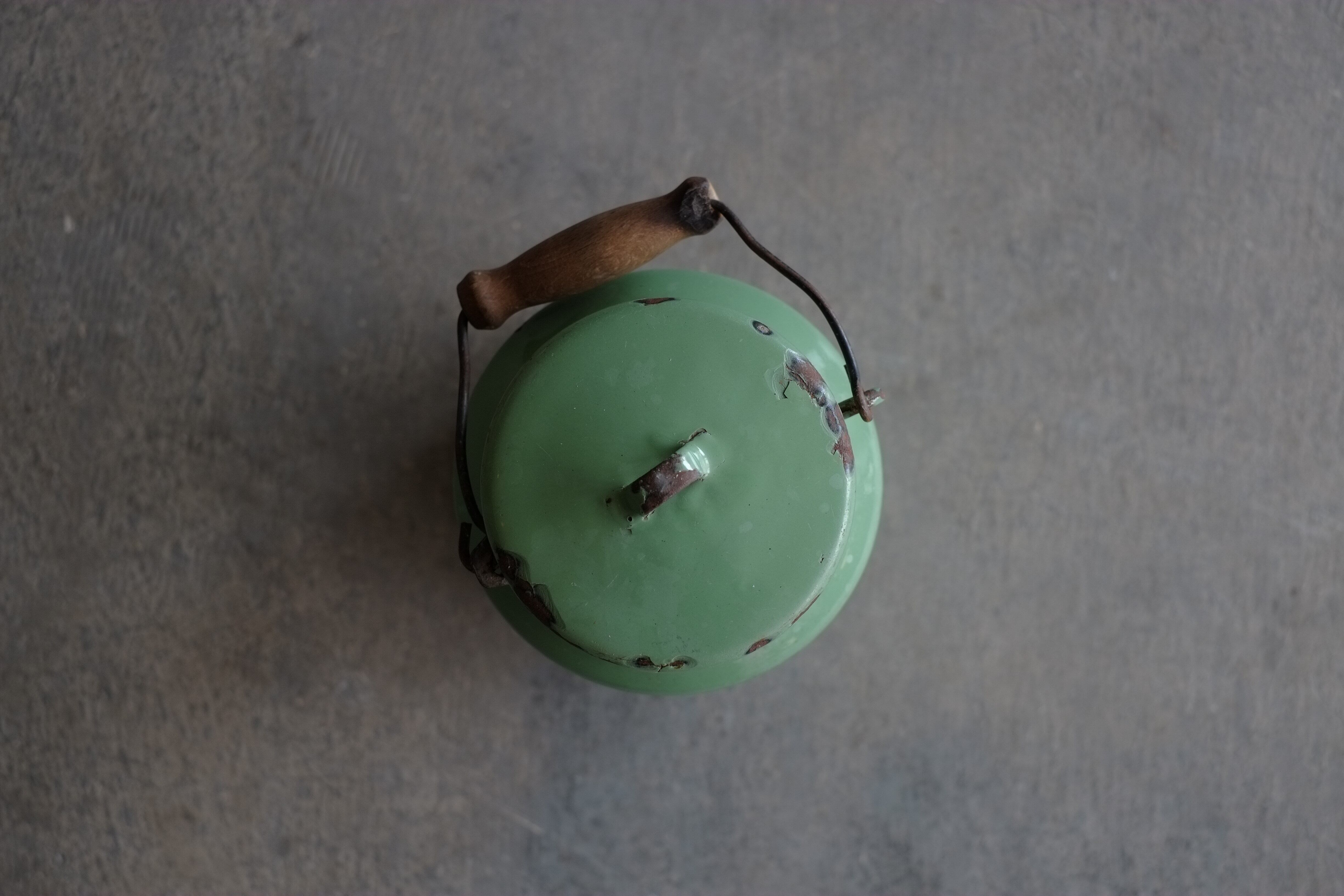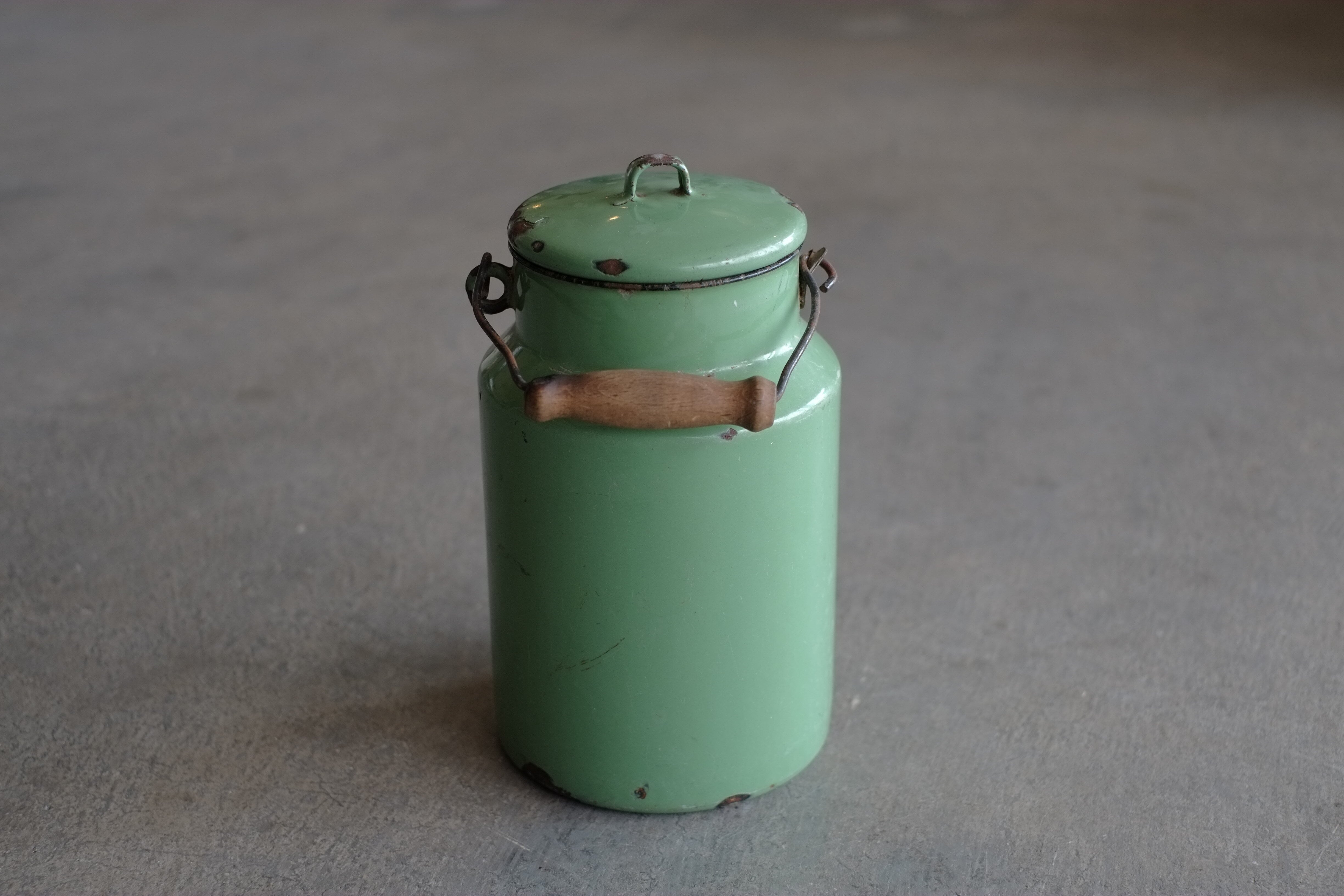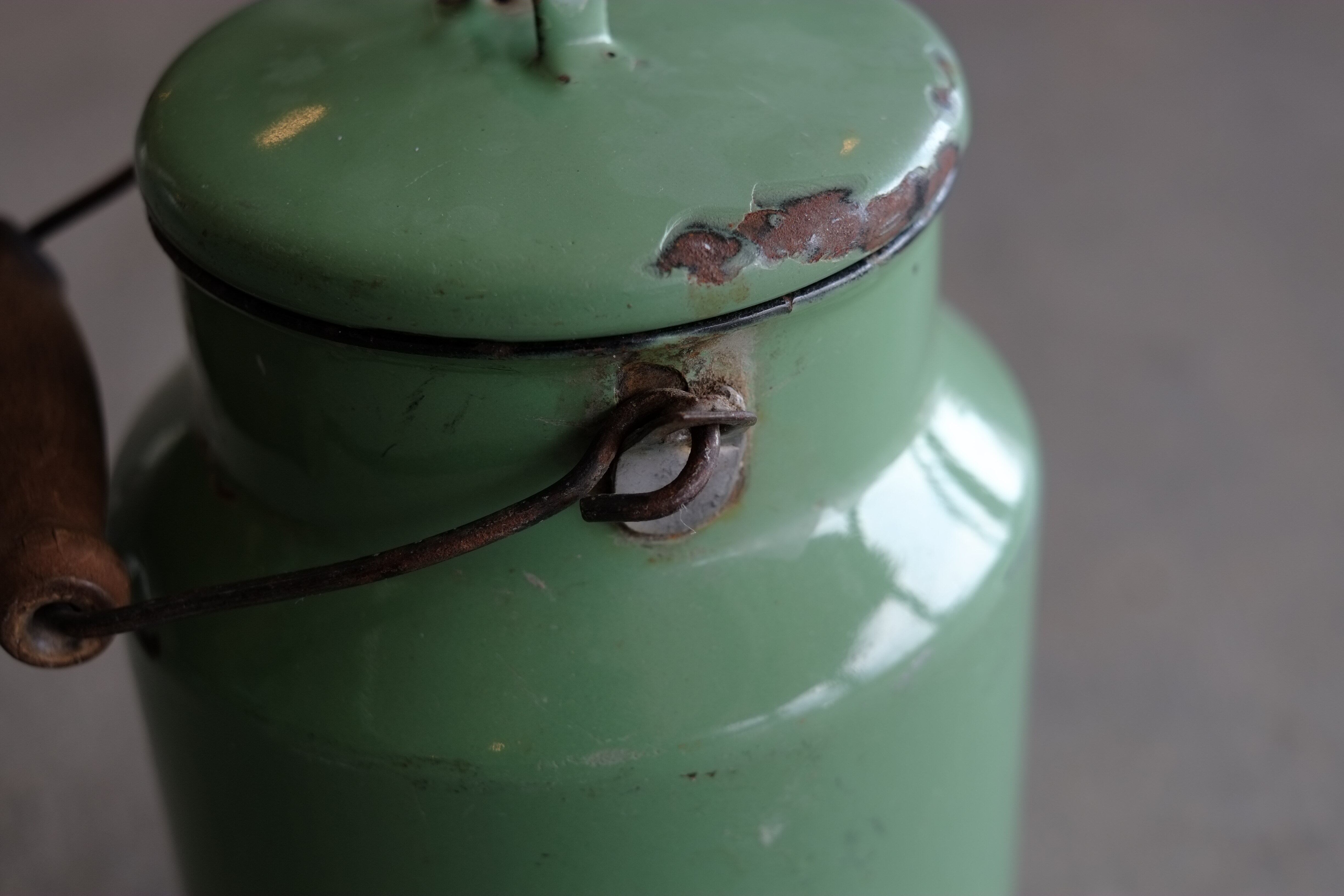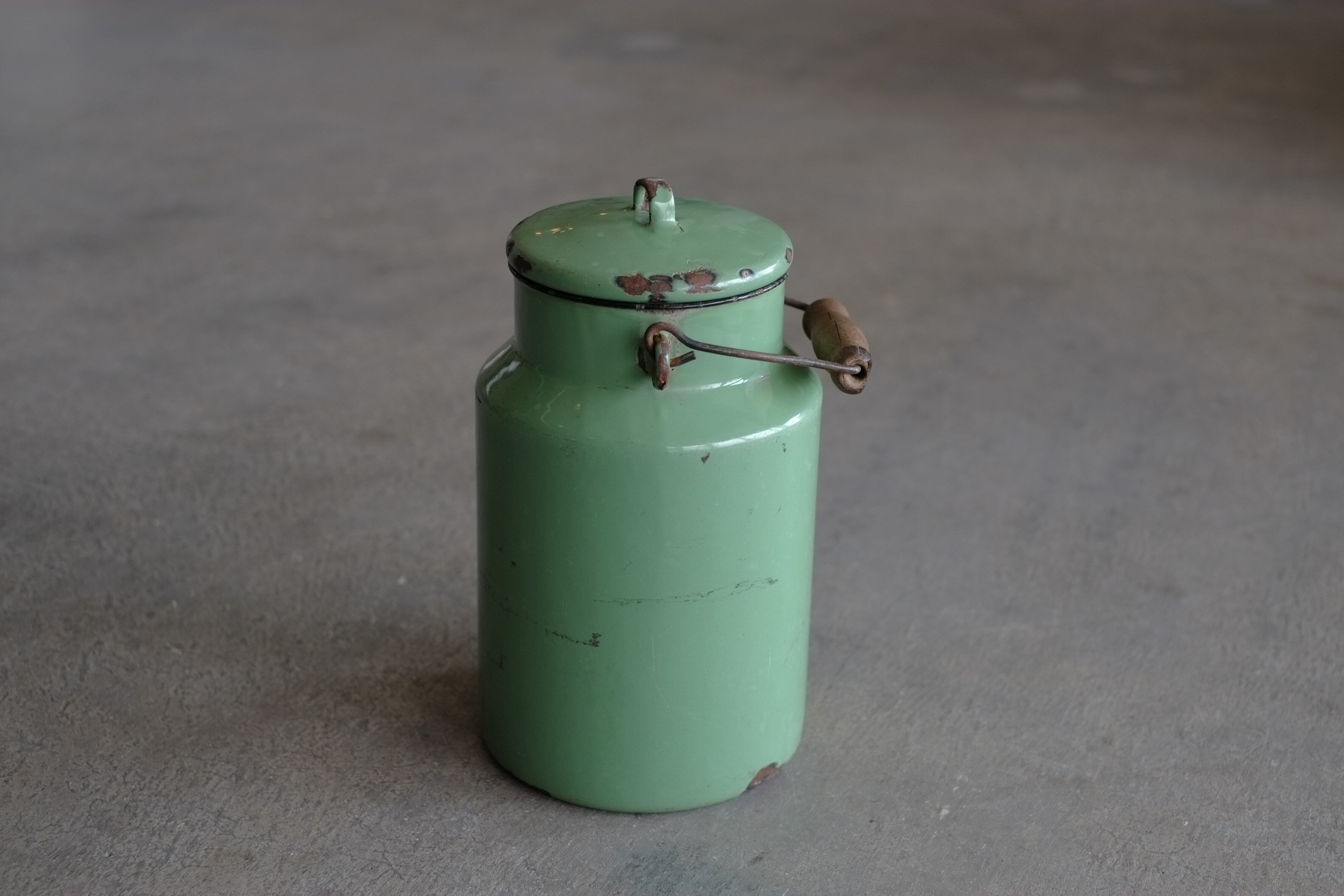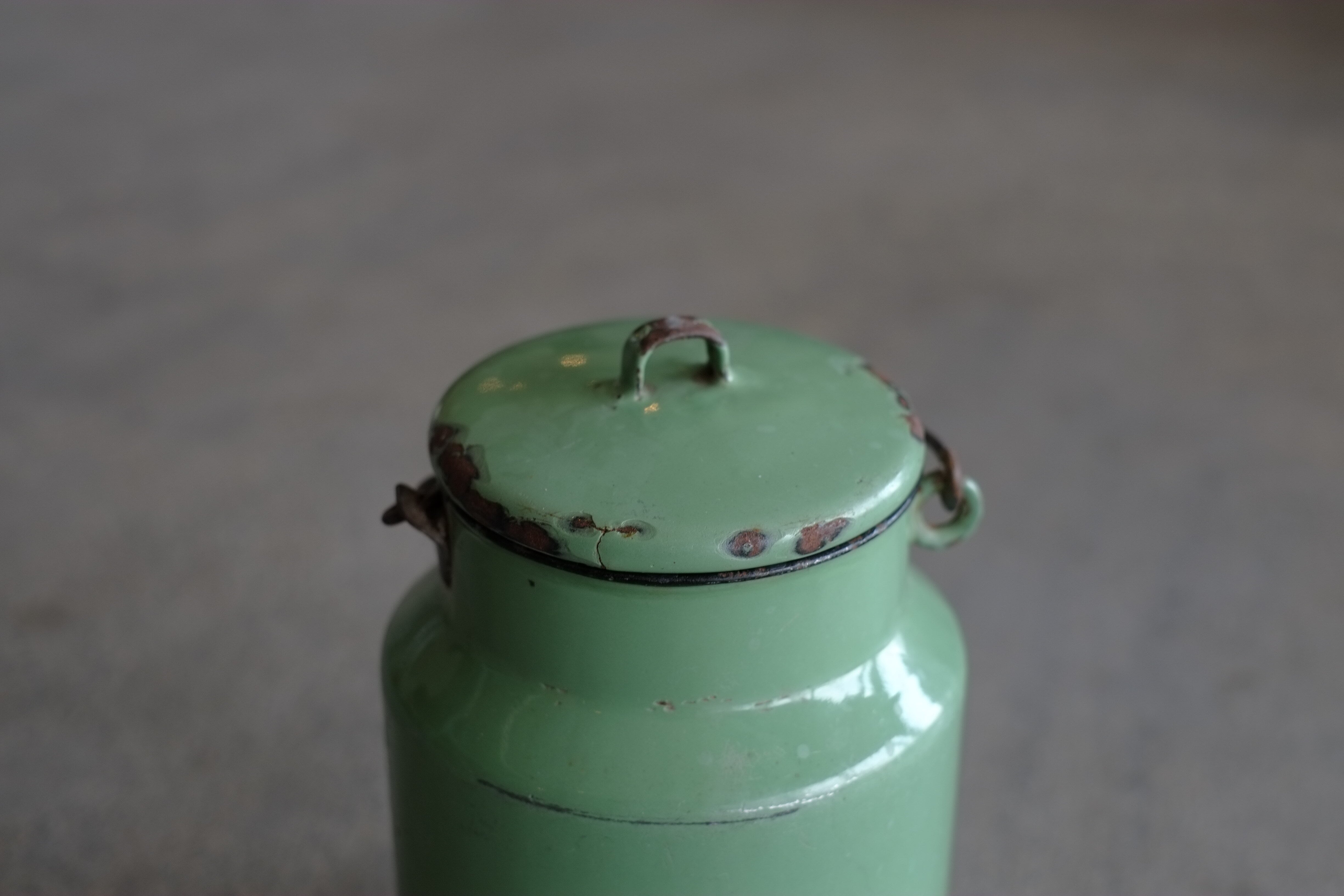 取手部分に少し焦げが合ったり、塗装にも錆がありますが、経年変化の良さもたっぷり出ているキャニスターです。