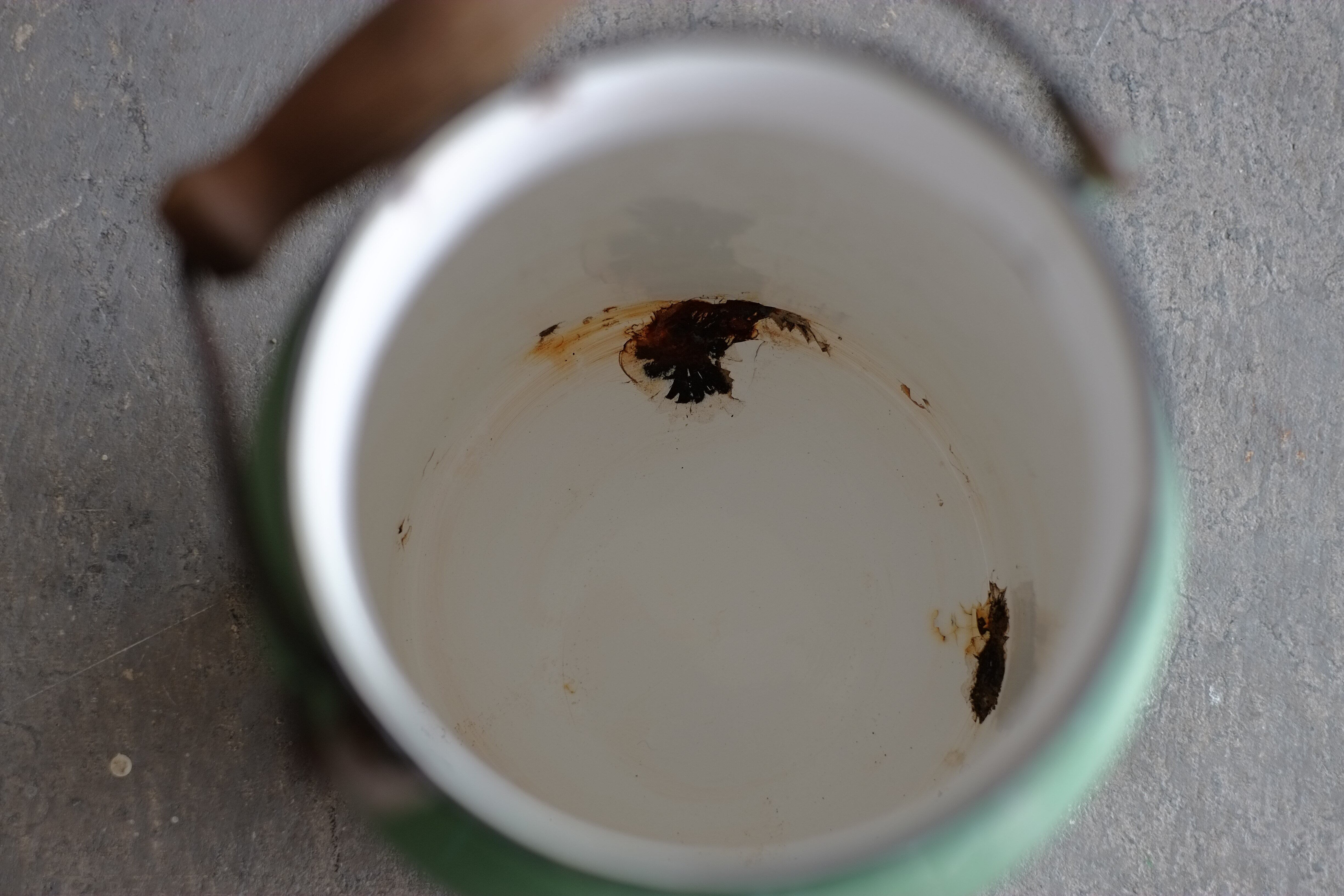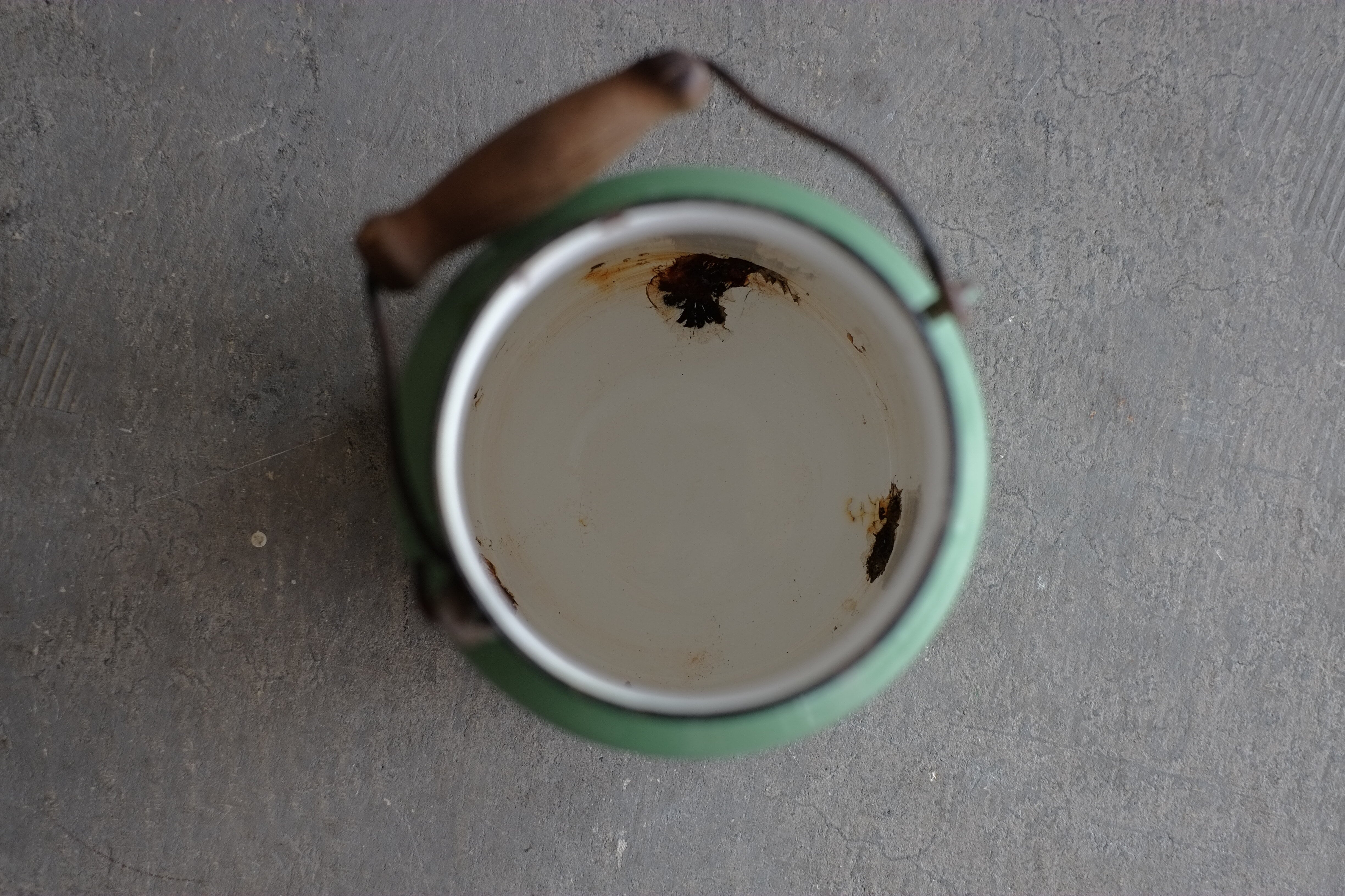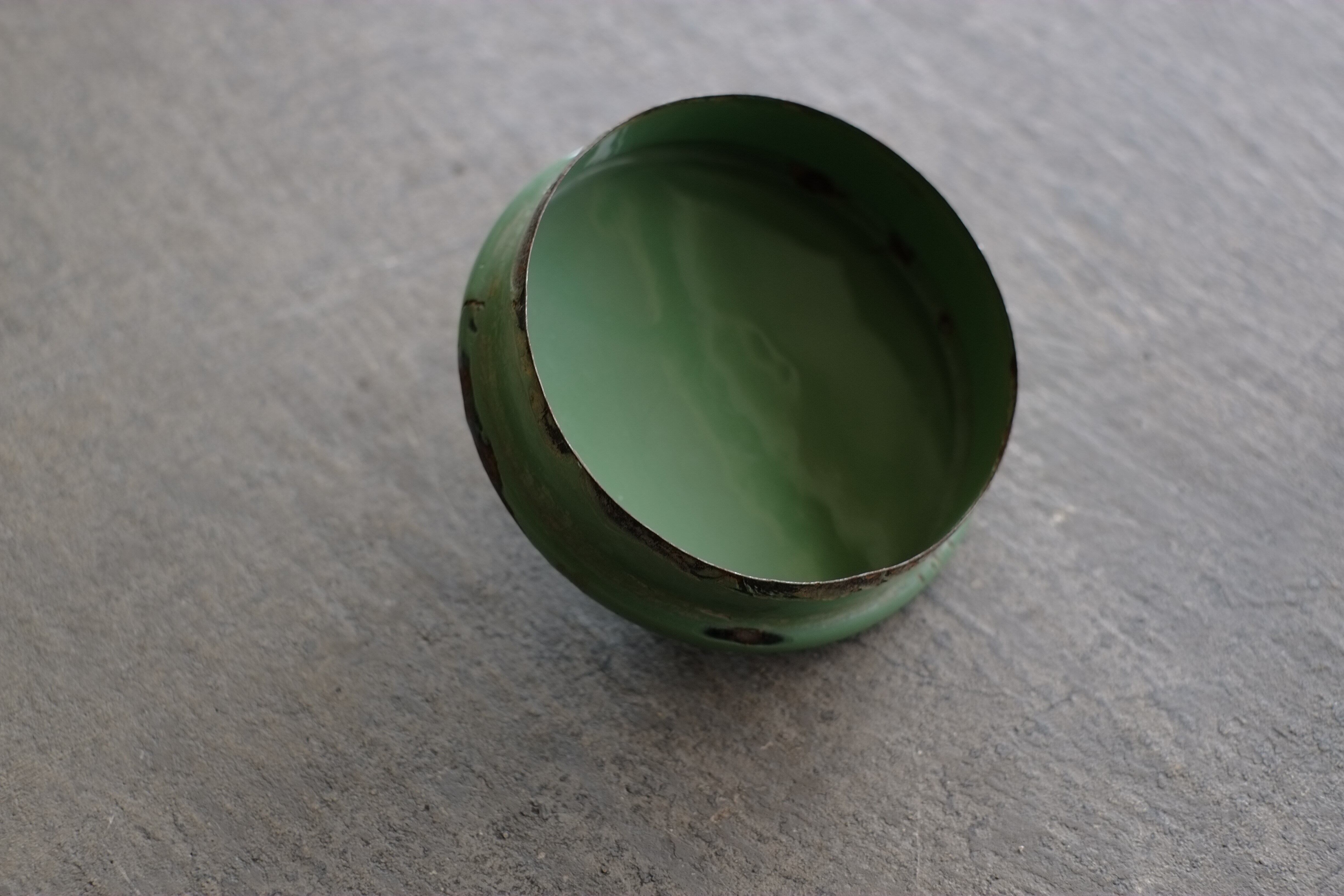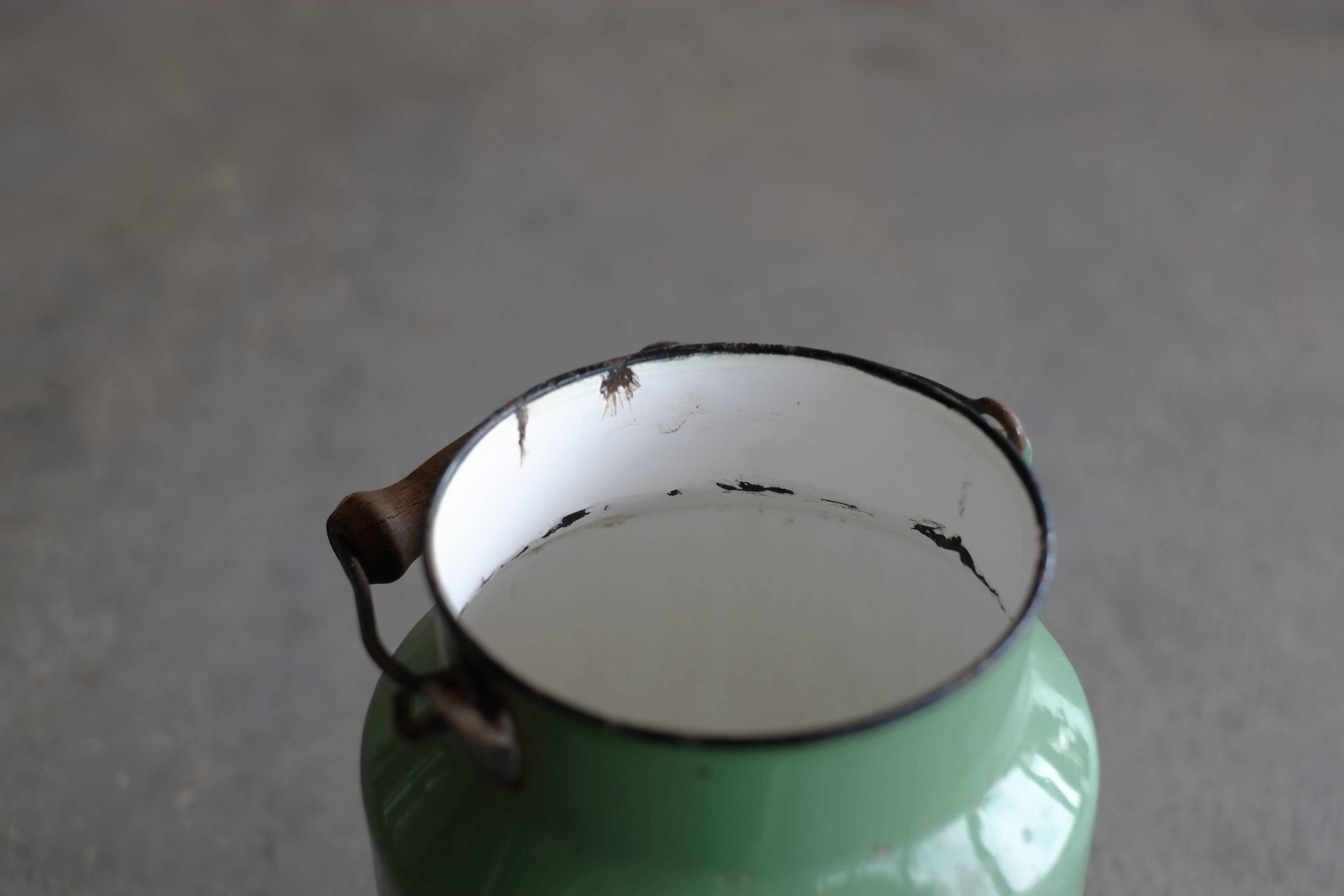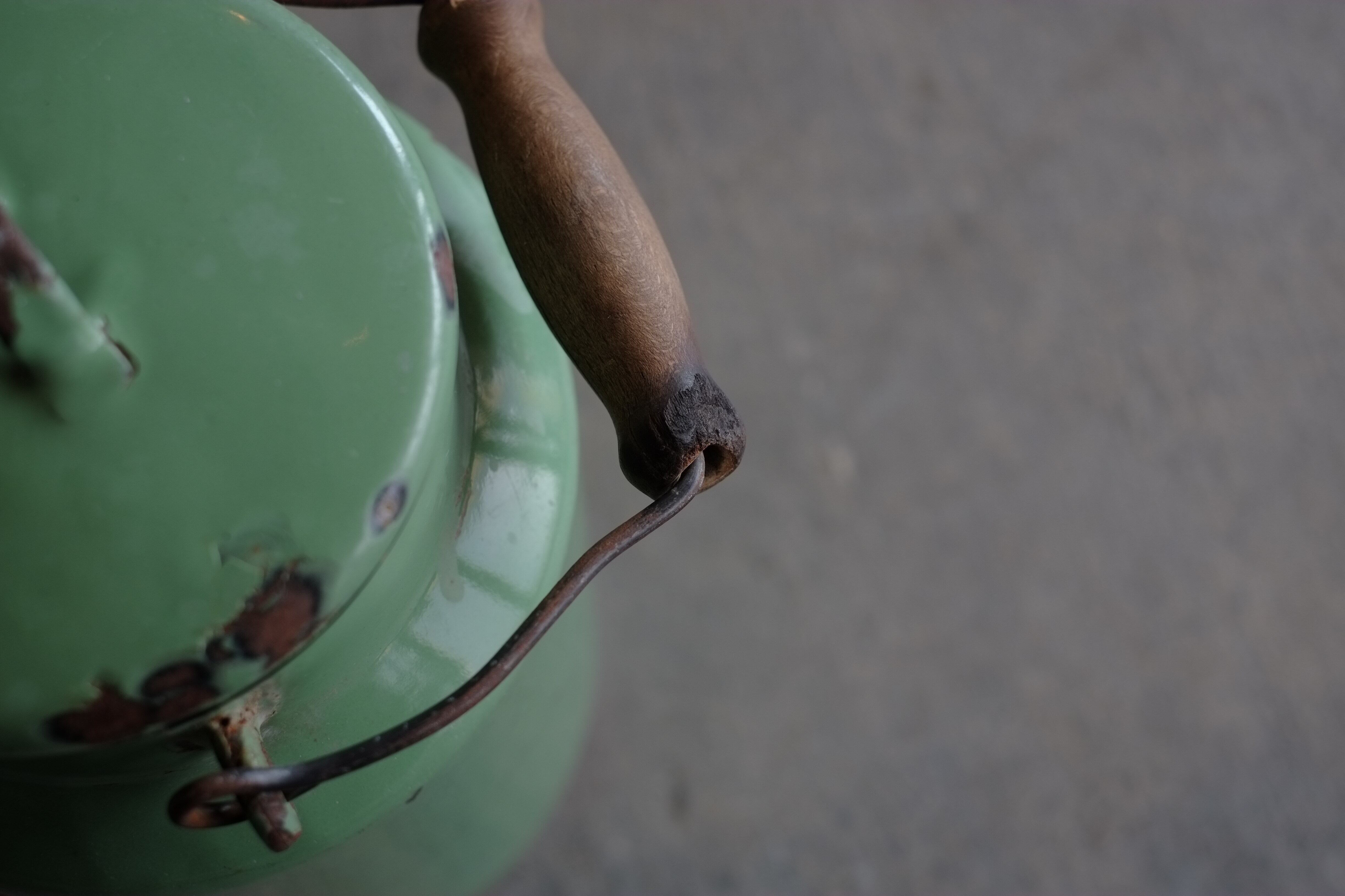 取手部分に少し焦げが合ったり、塗装にも錆がありますが、経年変化の良さもたっぷり出ているキャニスターです。