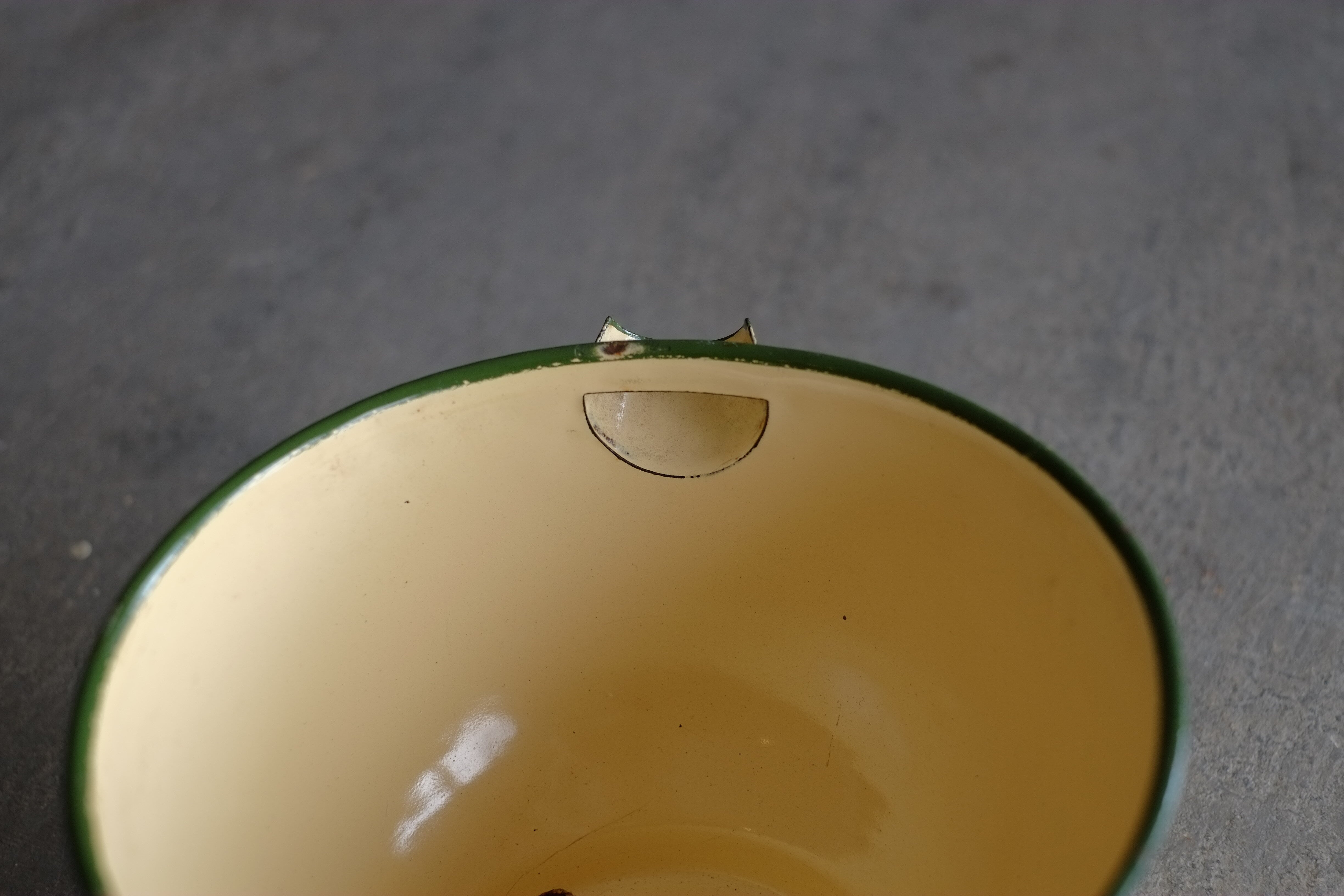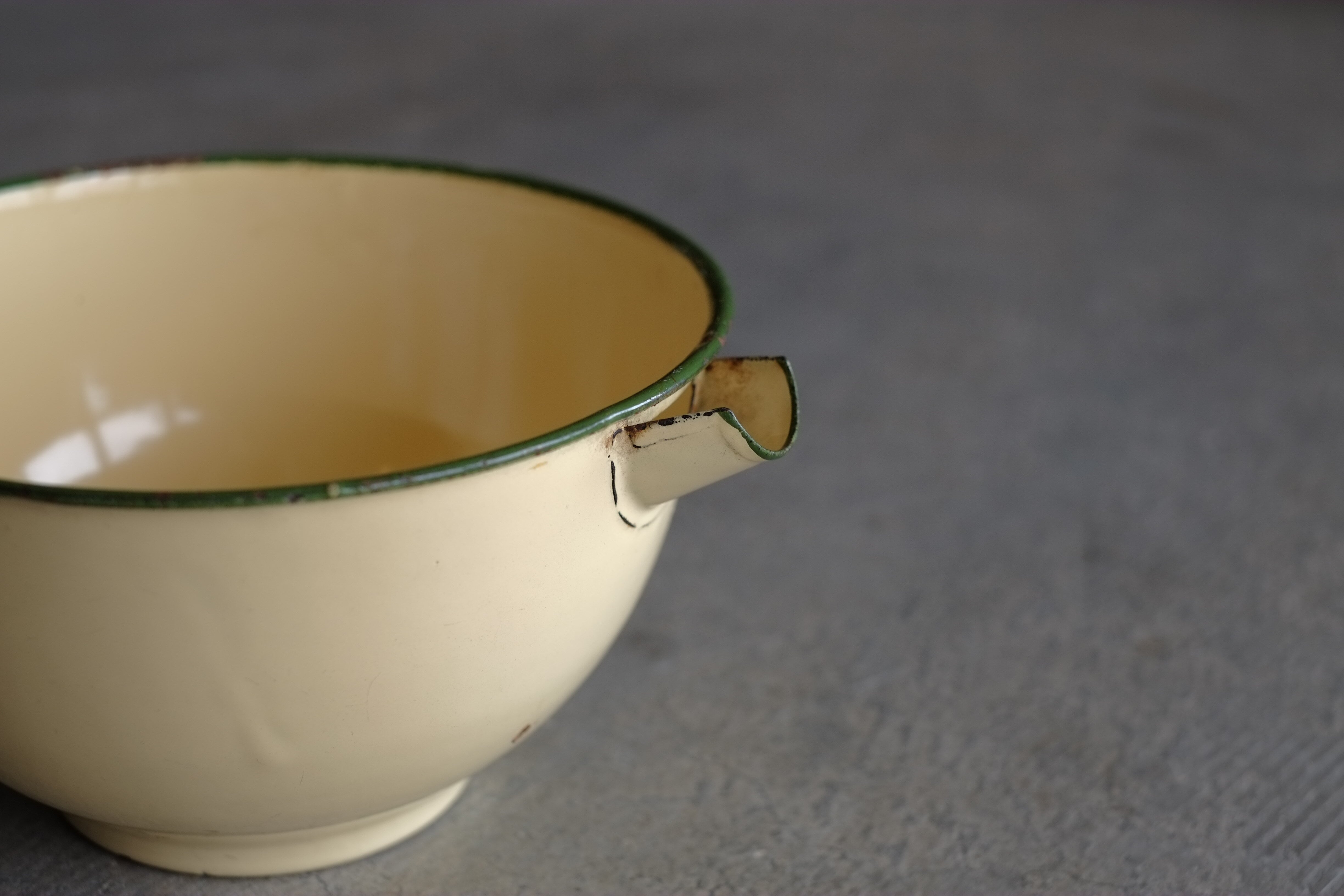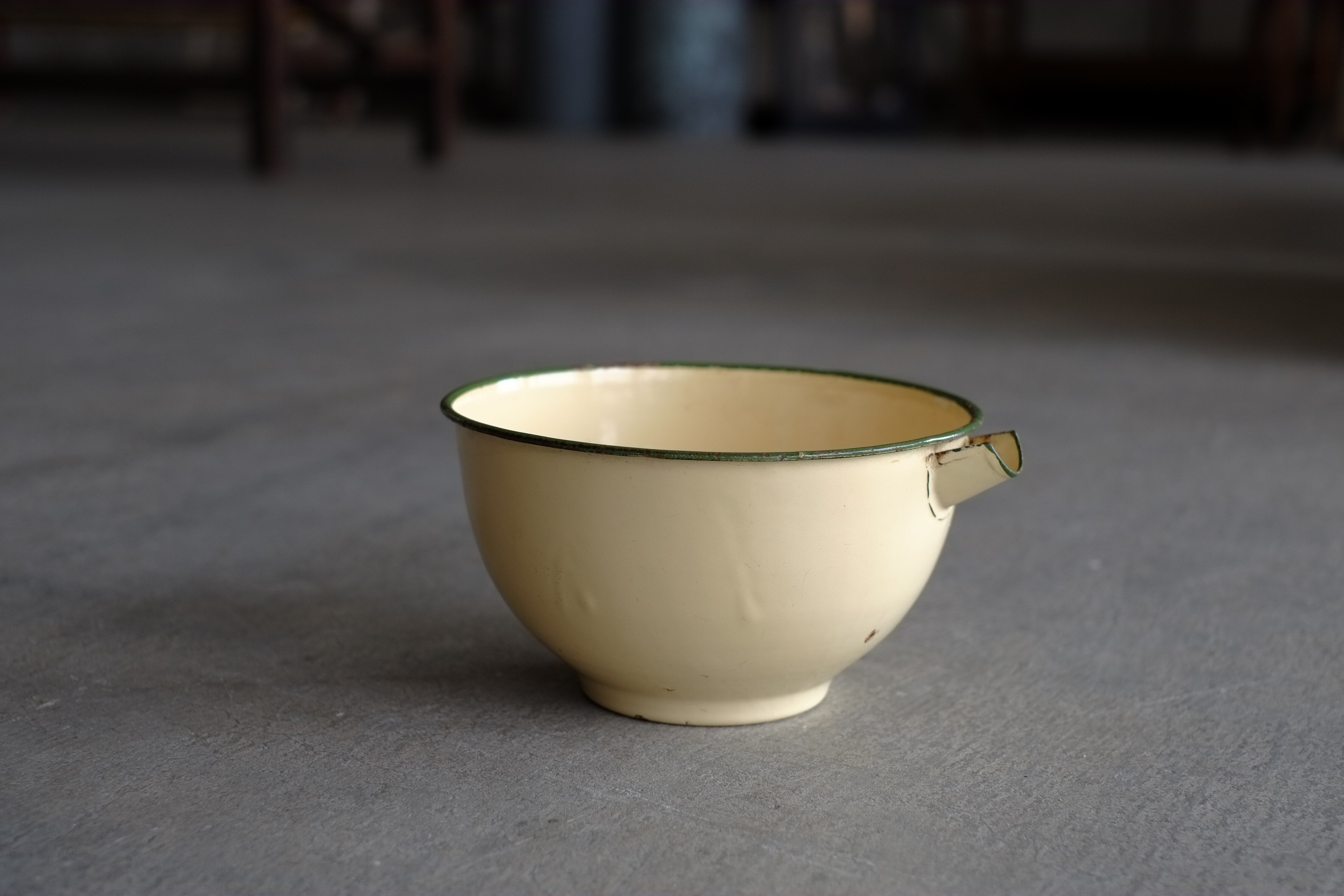 口のついているホーローボウル。