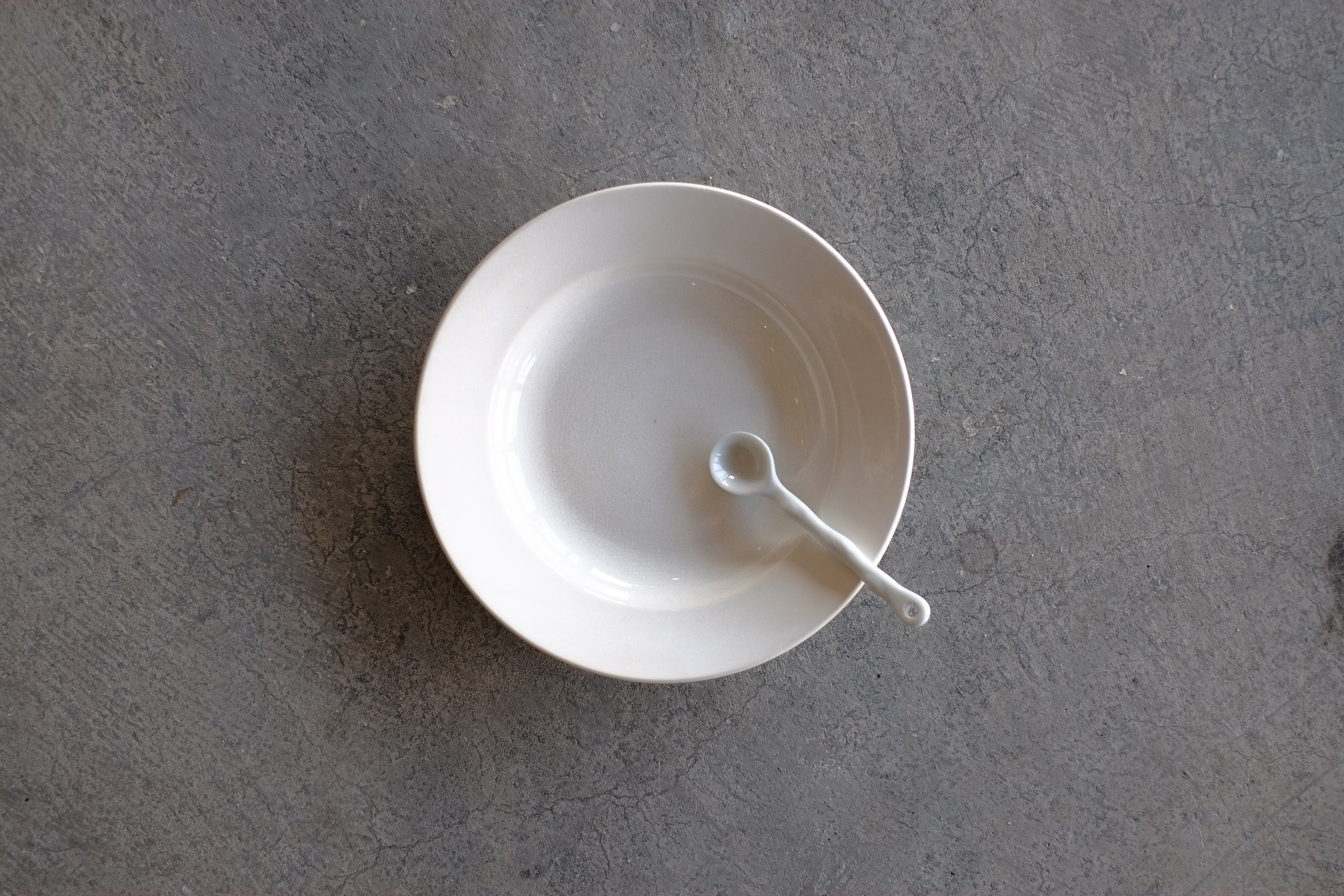艶のある白釉もまだまだ美しく、少し厚手のスープ皿は日常でつい手に取ってしまう1枚になりそうです。